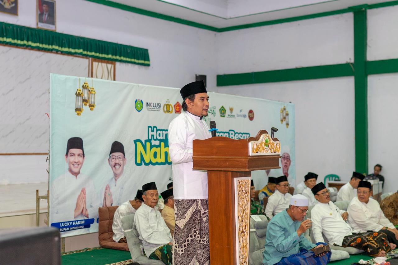 Di hadapan tokoh agama dan tamu undangan yang memadati Aula Utama PCNU Indramayu, politisi senior yang akrab disapa Dewa ini secara eksplisit menyapa Syaefudin dengan sebutan “Bupati”.
