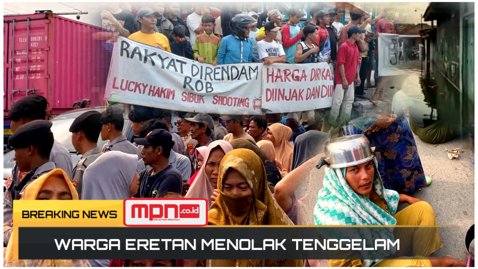 ‎“Cukup sudah janji tanpa bukti! Kami capek setiap tahun rumah kebanjiran, harta rusak, anak-anak tidak bisa sekolah,” teriak salah satu orator di tengah kerumunan.