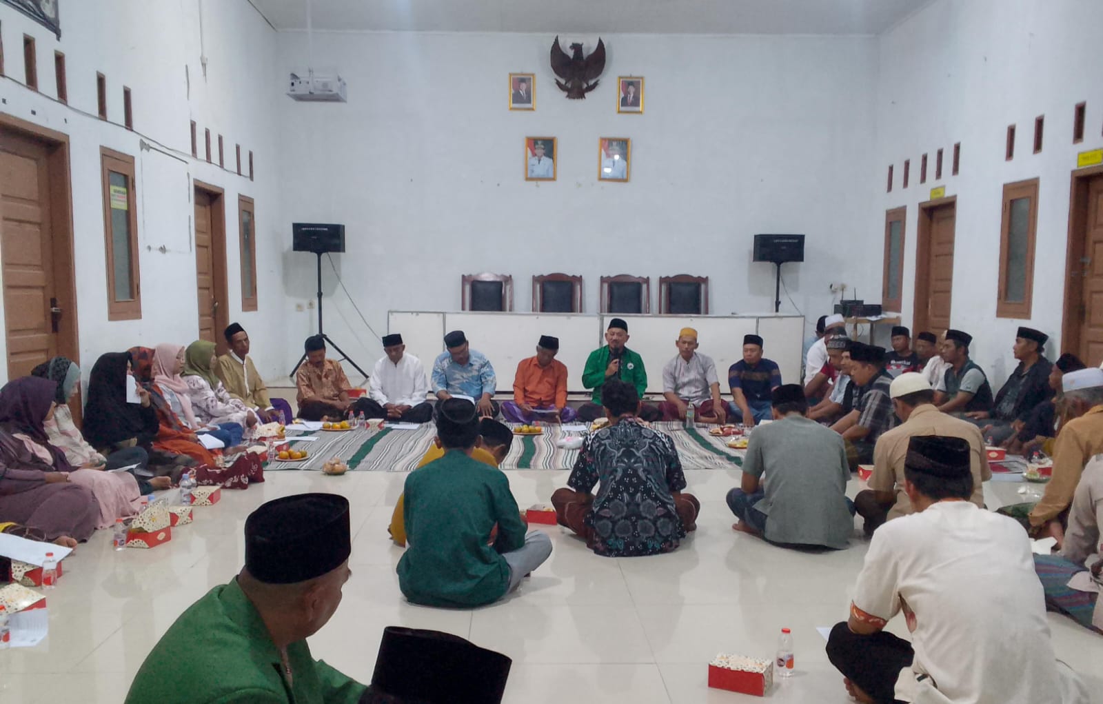 ‎Lantunan dzikir dan doa dipimpin tokoh agama setempat menggema di ruangan. Warga duduk bersila tanpa sekat pedagang pasar, tokoh masyarakat, pemuda hingga aparat desa menyatu dalam satu majelis. Pemandangan itu menjadi simbol rekonsiliasi setelah dinamika demokrasi desa yang sempat menghangat.