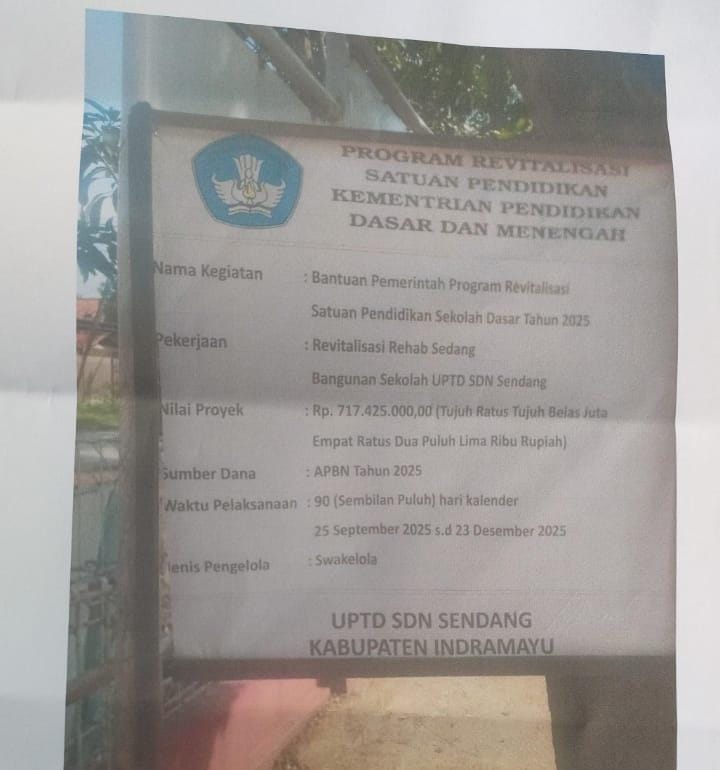 Mpn.co.id. LBH Singakriya memberikan perhatian terhadap pelaksanaan bantuan pemerintah melalui Program Revitalisasi Satuan Pendidikan Sekolah Dasar Tahun 2025 yang bersumber dari Anggaran Pendapatan dan Belanja Negara (APBN) di UPTD SDN Sendang, Kecamatan Karangampel, Kabupaten Indramayu.