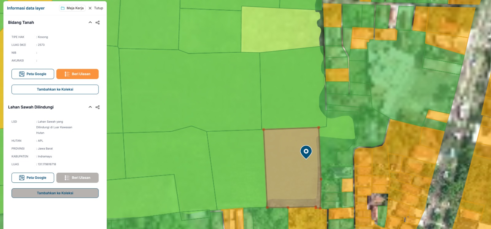 Berdasarkan penelusuran LBH Singakriya terhadap peta resmi Lahan Sawah yang Dilindungi ATR/BPN Pusat, lokasi pembangunan tersebut berada di kawasan sawah yang secara hukum wajib dipertahankan fungsinya dan tidak dapat dialihfungsikan secara bebas.