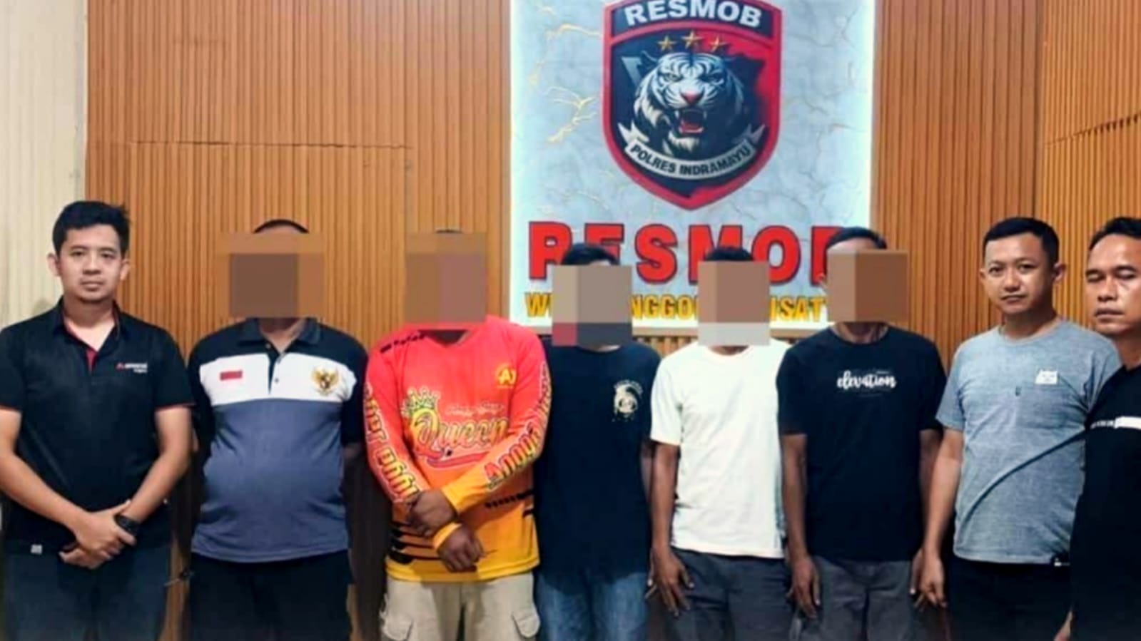 Kelima terduga pelaku masing-masing berinisial R (42), H (45), S (41), Su (53), dan T (47) seluruhnya warga Kecamatan Anjatan, Kabupaten Indramayu. Polisi juga mengamankan sejumlah barang bukti berupa rekaman video peristiwa serta hasil visum dari korban, yang memperkuat dugaan tindak pidana pengeroyokan sebagaimana diatur dalam Pasal 170 KUHP.