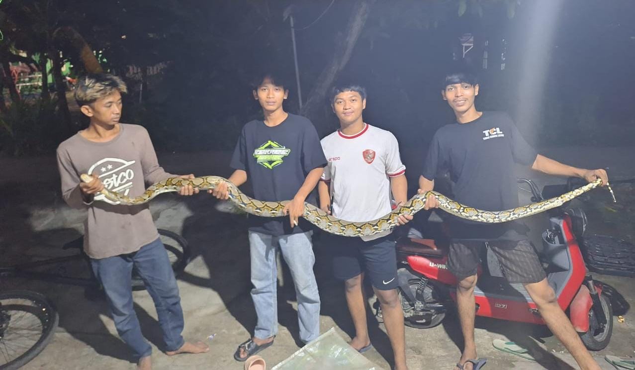 Warga Indramayu Gempar, Ular Piton Sepanjang 6 Meter Ditemukan di Pemukiman warga.